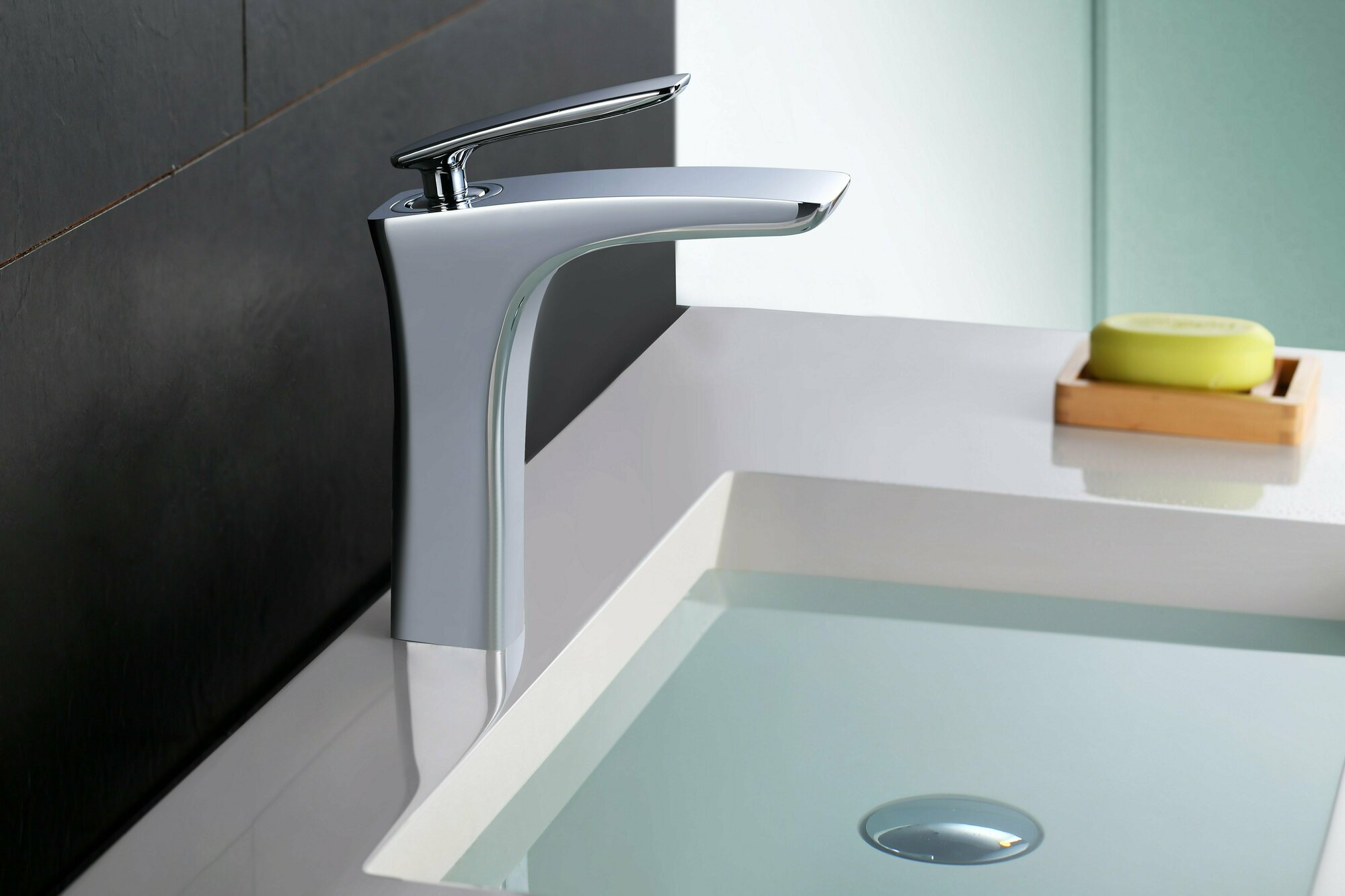 | Плюсы: | Стильный массивный с длинным изливом |