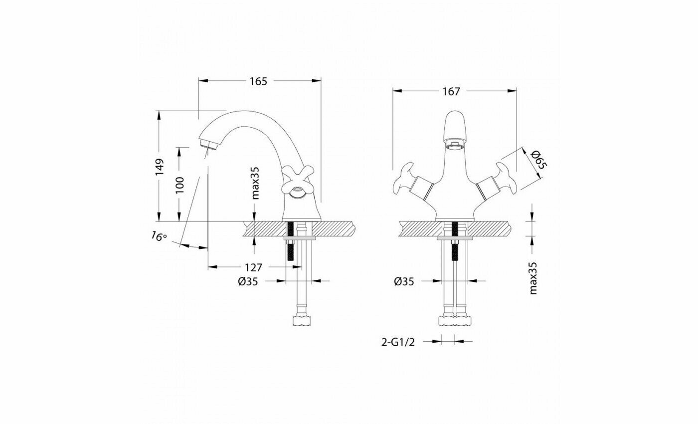 | Комплектация | корпус смесителя с поворотным изливом с аэратором (регулятором расхода воды), кран-буксами с керамическими пластинами и металлическими рукоятками, прокладка, С-образная резиновая шайба, С-образная металлическая шайба, металлический штифт с резьбой, гайка, гибкая подводка для воды (2 шт.) |
