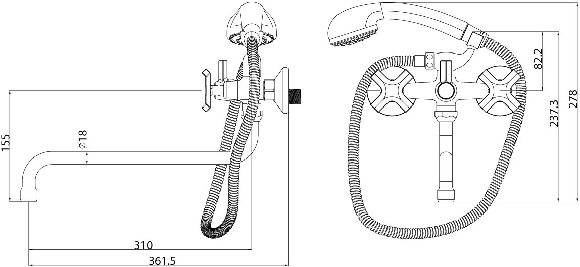 Смеситель для ванны LEMARK Promotion (LM6051C), с длинным изливом и душевым набором
