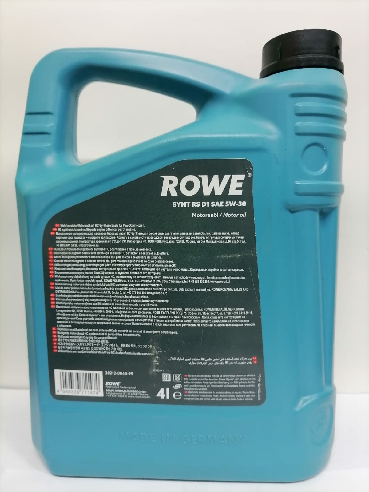 Купить HC-синтетическое моторное масло ROWE Hightec Synt RS D1 SAE 5W-30, 4 л