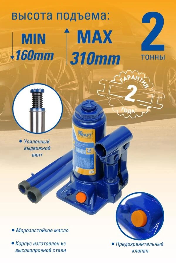 Домкрат гидравлический KRAFT KT 800012 бутылочный, 2т