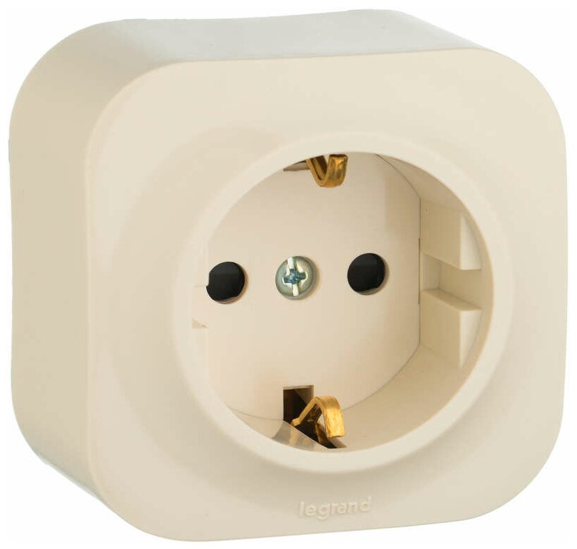 Розетка одинарная 1 м c заземлением со шторками Quteo слоновая кость накладной монтаж (Legrand), арт. 782250