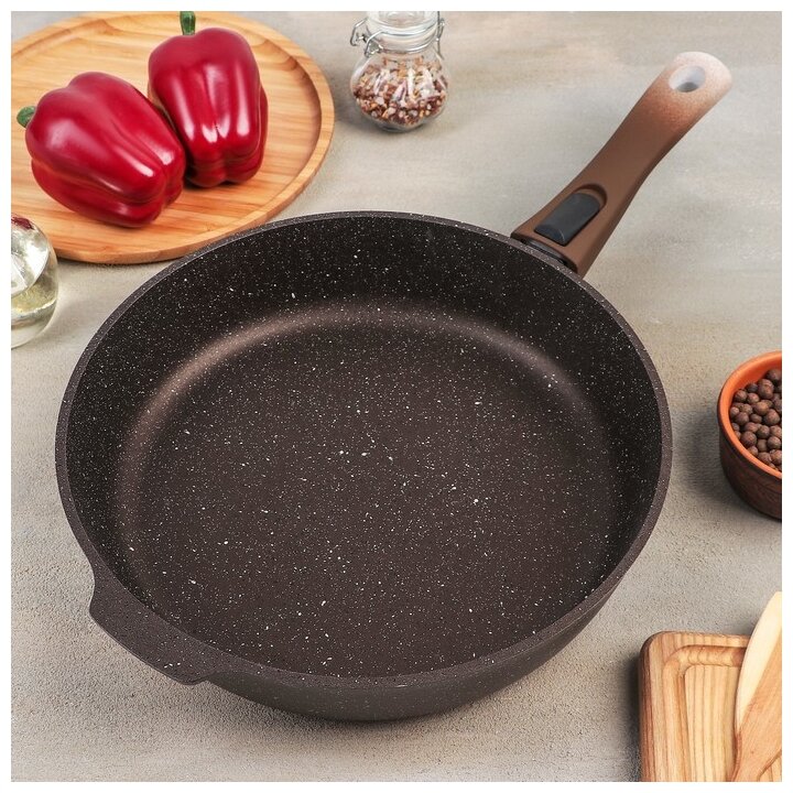 Сковорода, d=28 см, съёмная ручка, антипригарное покрытие, цвет кофейный мрамор