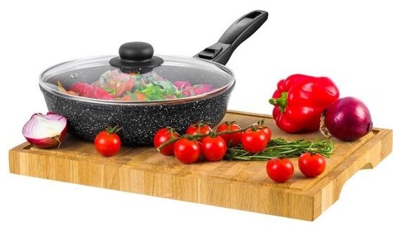 Сковорода глубокая 24 см гармония вкуса "Черный мрамор" С крышкой ф24, с/р, 45*25*11,5 см