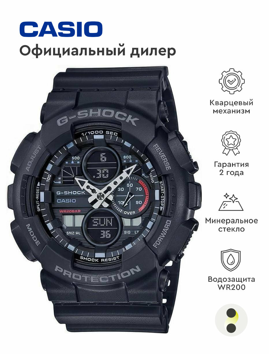 Наручные часы CASIO G-Shock GA-140-1A1 мужские, кварцевые, будильник, хронограф, секундомер, таймер обратного отсчета, водонепроницаемые, противоударные, подсветка дисплея, черный