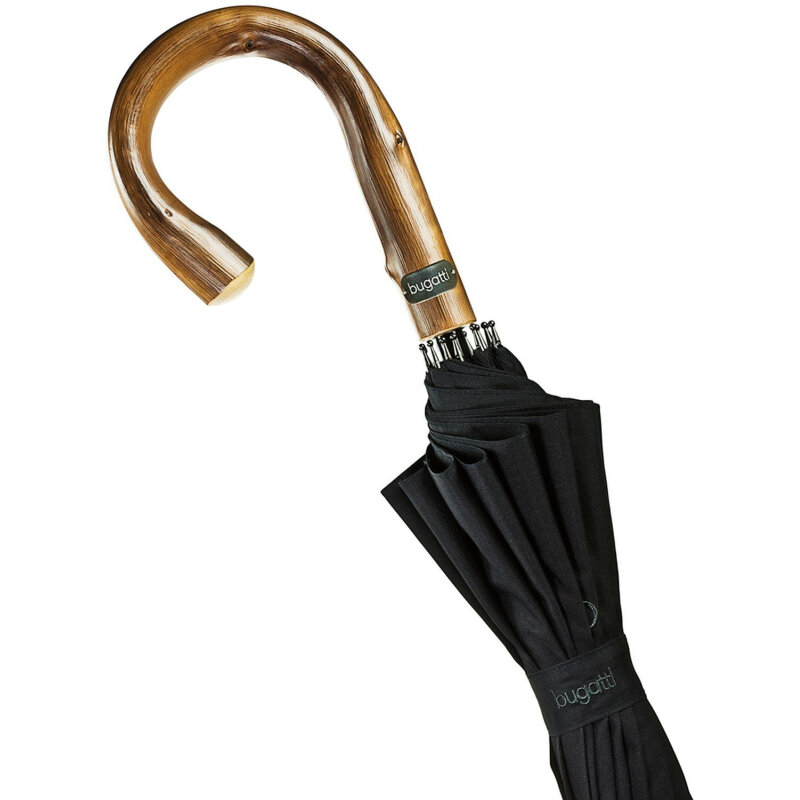 Bugatti Мужской зонт-трость "Big Boss" чёрного цвета с ручкой из массива дерева (d-131 см, Bugatti)