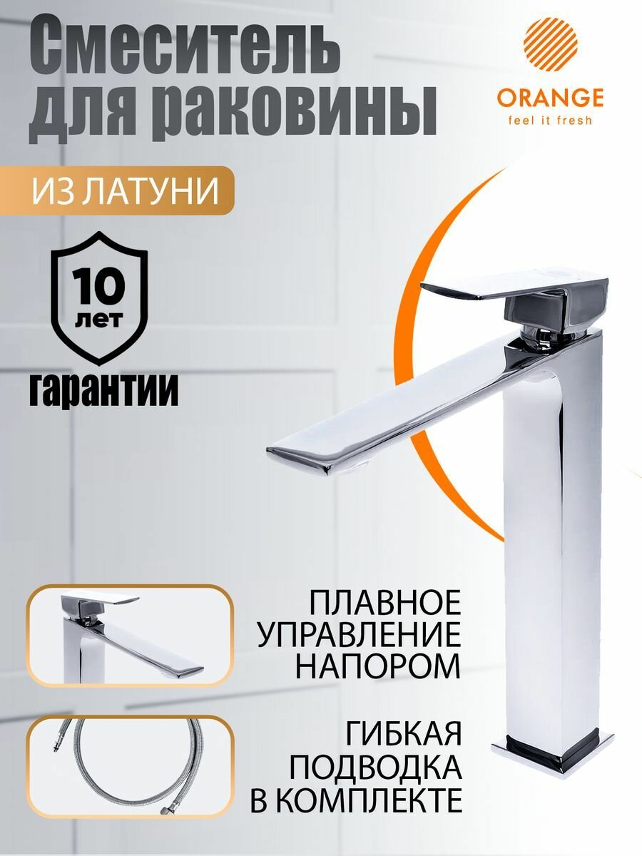 Смеситель для накладной раковины высокий Orange Lutz M04-121cr, хром