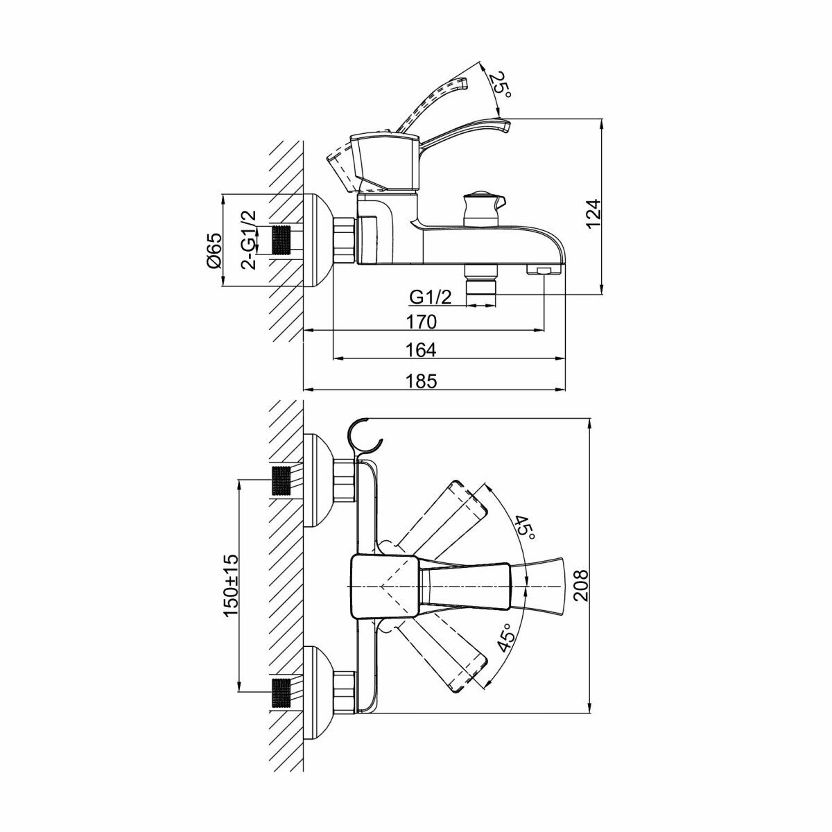 Смеситель для ванны с душем D&K Rhein.Bach DA1473201 короткий излив хром