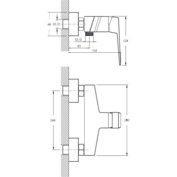 Смеситель душа без излива RUSH Thira (TR3635-63) квадратный, хром, латунь, гарантия 5 лет