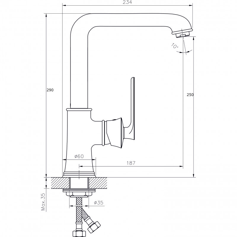 | Комплектация | смеситель, крепеж, гибкая подводка, инструкция |
