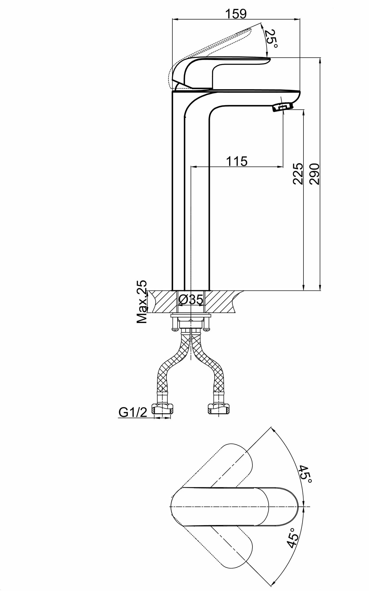 | Комплектация | смеситель - 1 шт., гибкая подводка - 2 шт., крепежная гайка - 1 шт., паспорт изделия - 1 шт., брендовая сумка - 1 шт. |