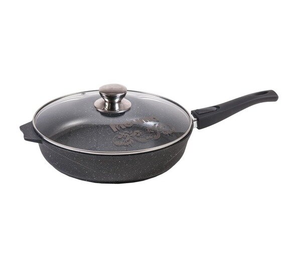 Сковорода мечта 26см с ручкой, антипригарное покрытие, стеклянная крышка, Гранит, brown