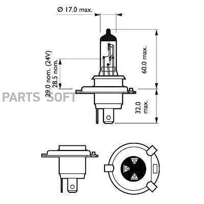 PHILIPS 12569RA Лампа H4 12569 RA 12V 100/90W P43t-38 C1