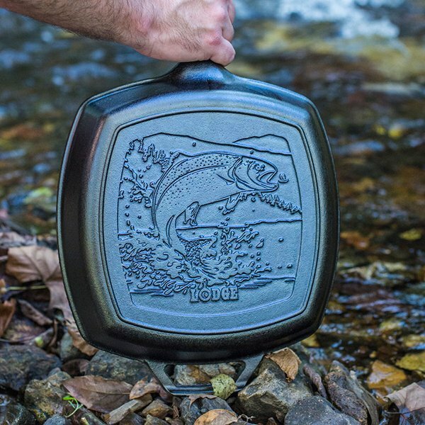Сковорода - гриль , чугунная, квадратная, 26 см, L8SKWLDR, "Рыба" серия Wildlife, LODGE, США