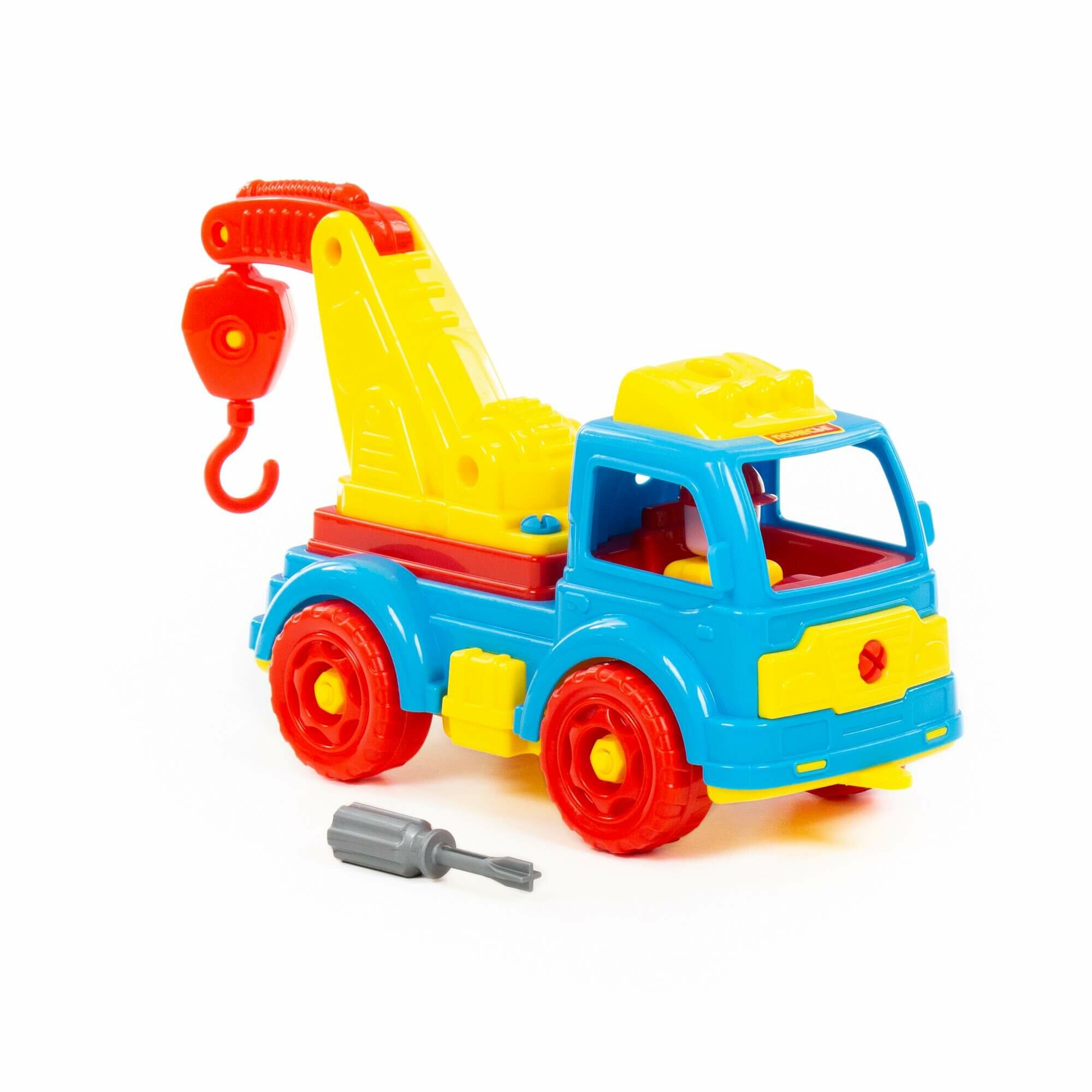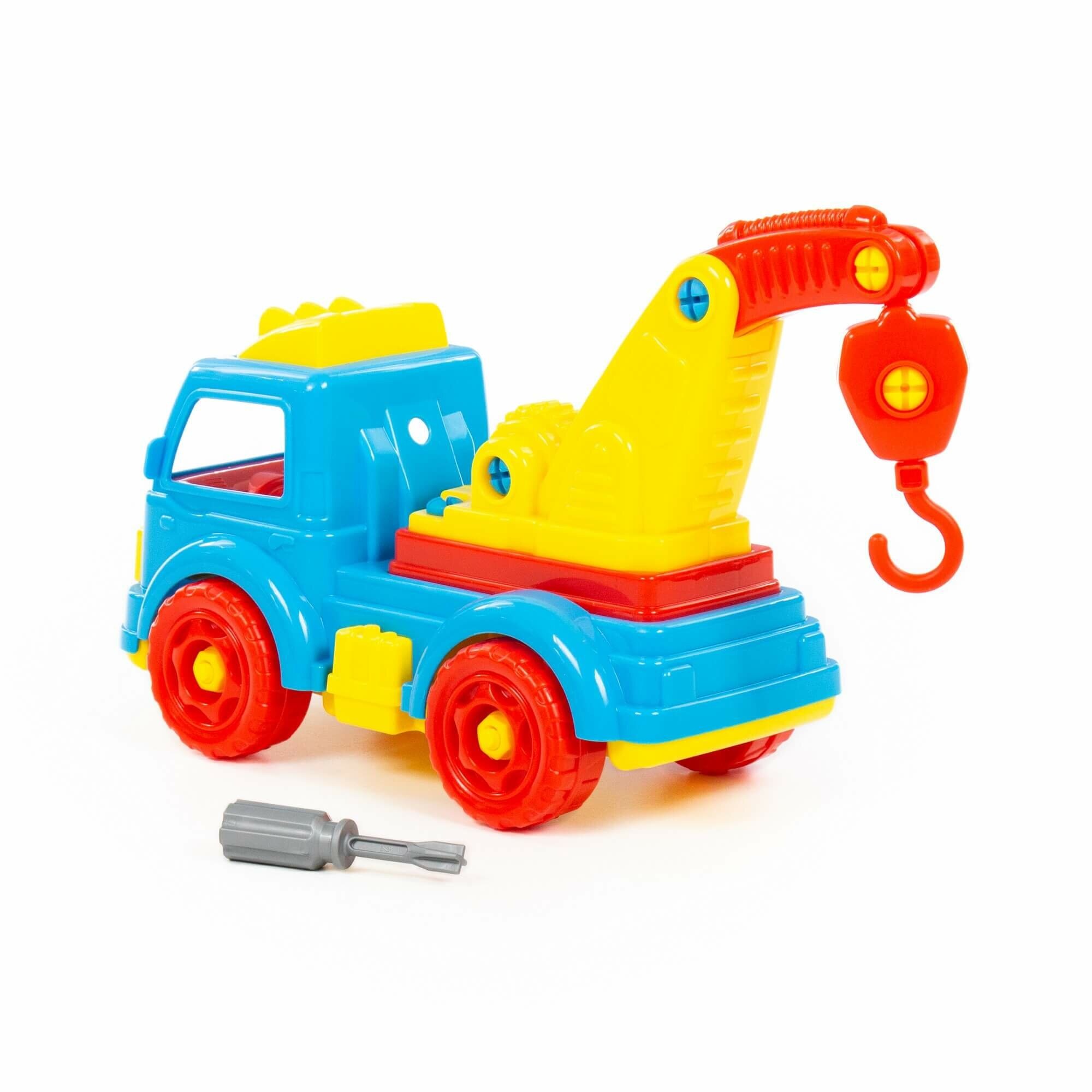 Конструктор-транспорт Полесье "Автомобиль-эвакуатор" в сеточке (73037)