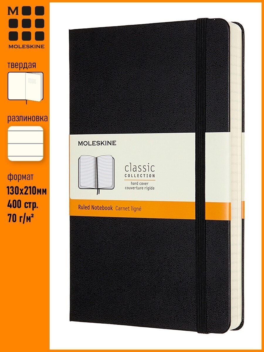 Блокнот Moleskine Classic Expanded Large, 200 листов, в линейку, 13 х 21 см, черный интересное: