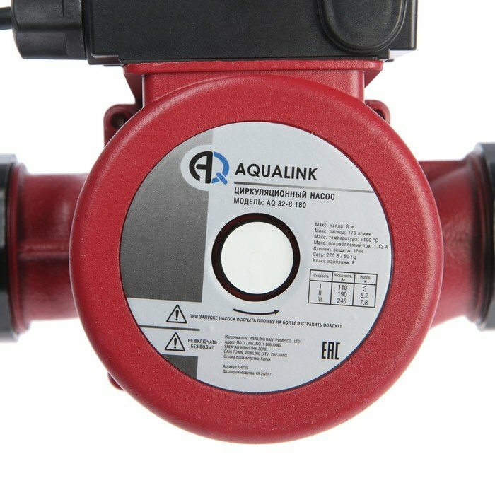 Насос циркуляционный Aqualink 32-8 180, напор 8 м, 170 л/мин Aqualink 7805313 .