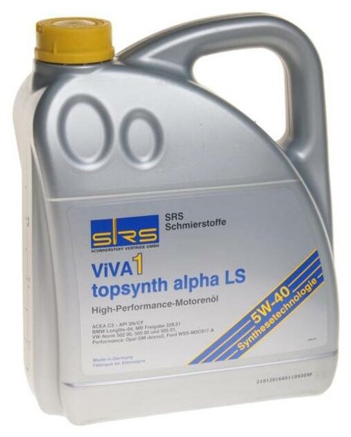 SRS 4033885001493 SRS Масло моторное VIVA 1 topsynth alpha LS 5W-40 (5 л.)