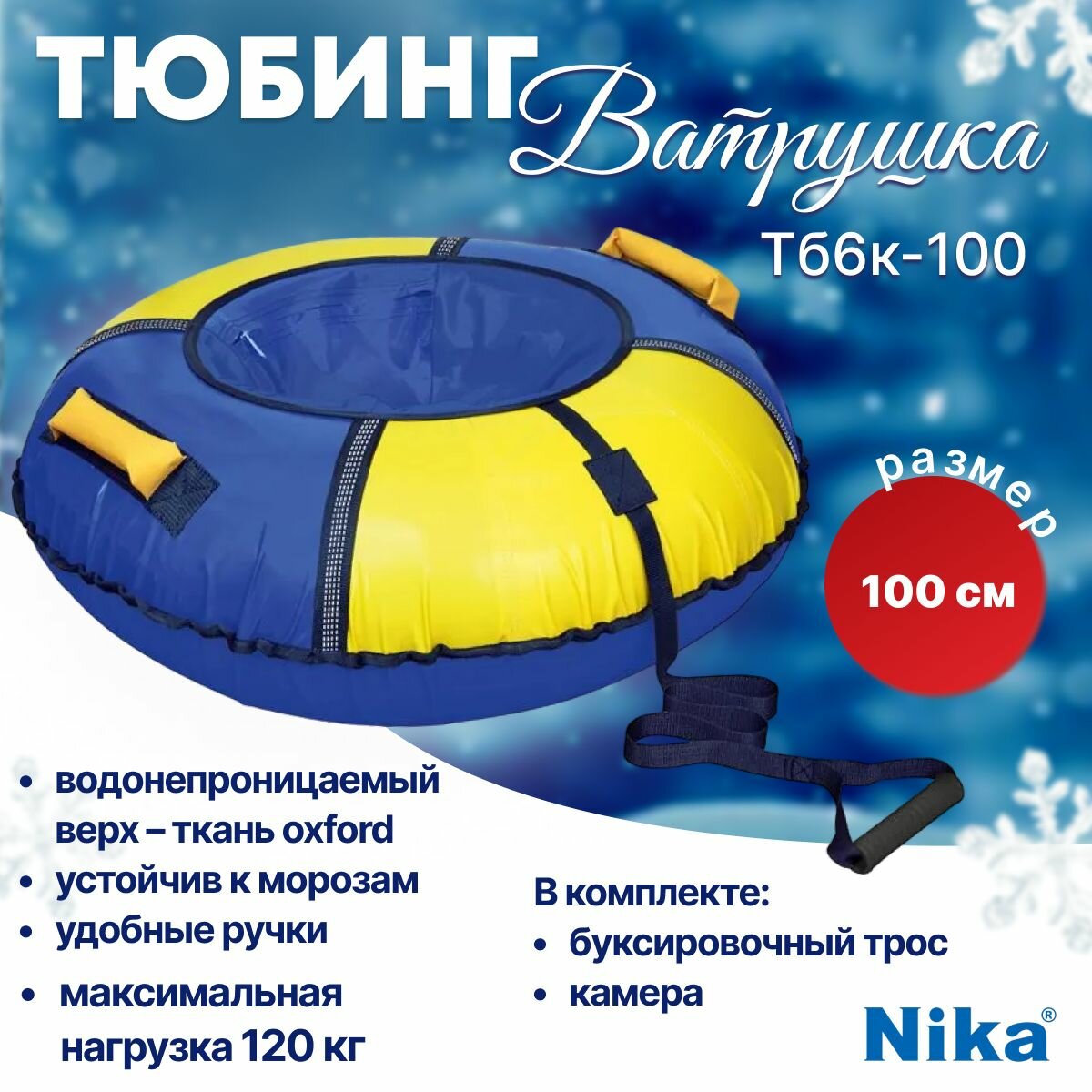 Ватрушка большая зимняя тюбинг 100 см NIKA ТБ6К-100/СЖ2 Синий/Жёлтый