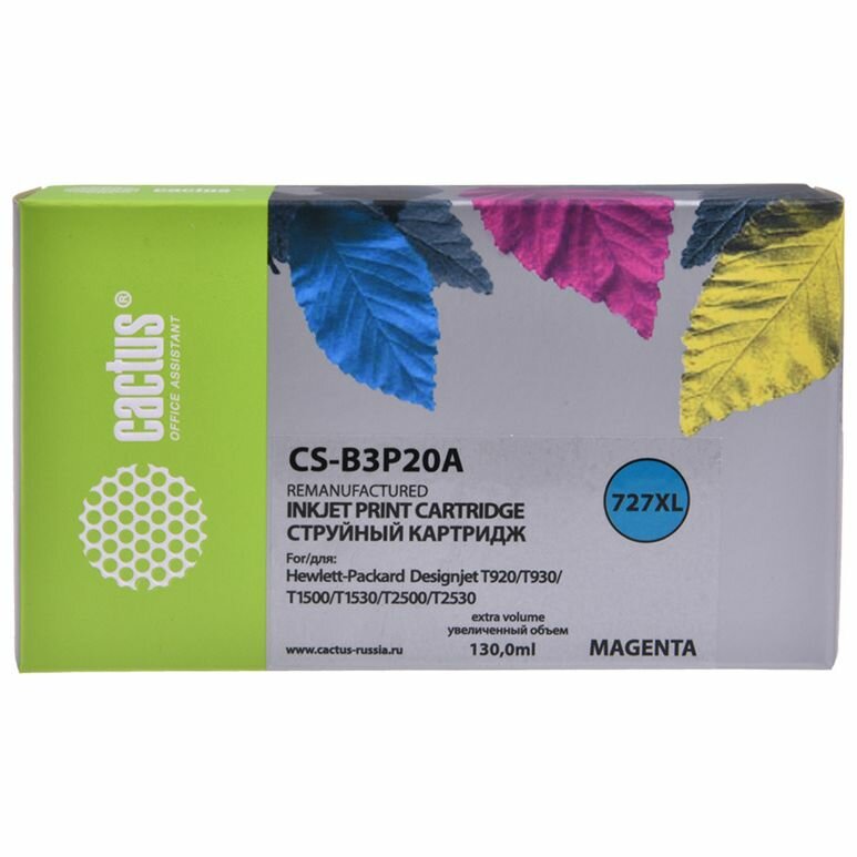 Cactus B3p20a Картридж 727 для HP DJ T920/t1500/t2530, пурпурный (130мл) .