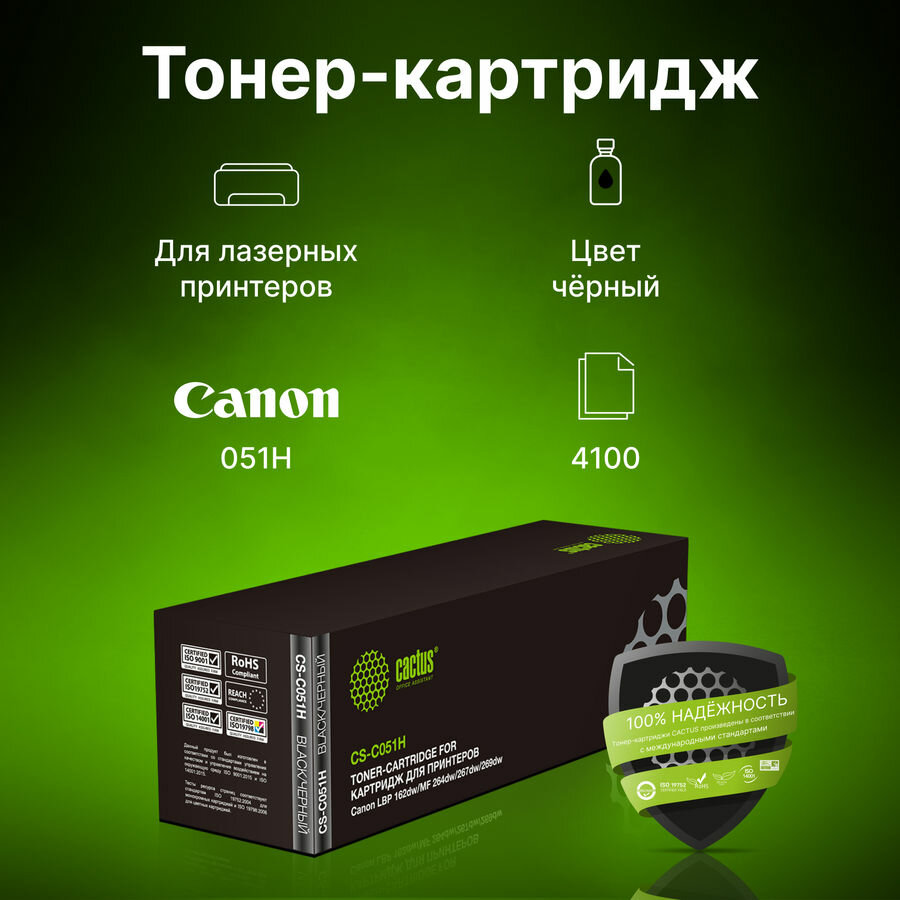 Тонер-картридж CACTUS (CS-C051H) для Canon LBP 162dw/MF 264dw/267dw/269dw, черный, ресурс 4100 страниц