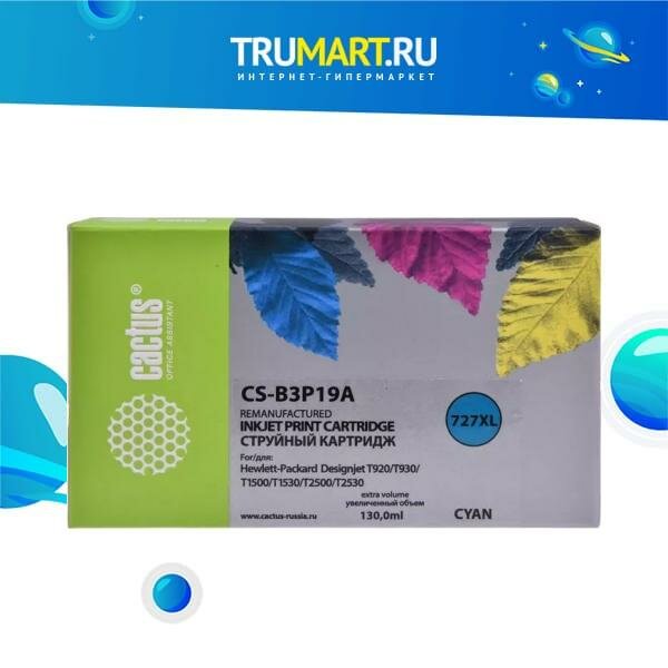 Cactus B3p19a Картридж 727 для HP DJ T920/t1500/t2530, голубой (130мл) .
