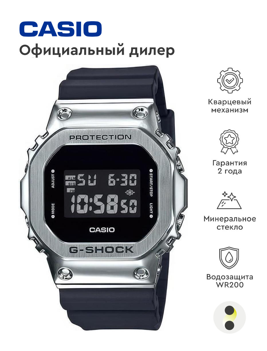 Наручные часы CASIO мужские G-Shock GM-5600-1 кварцевые, будильник, хронограф, секундомер, таймер обратного отсчета, водонепроницаемые, противоударные, подсветка дисплея, черный