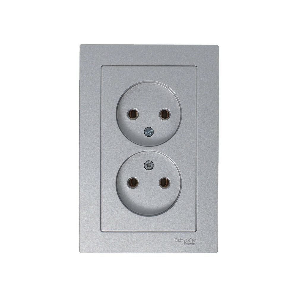 Розетка Schneider Electric AtlasDesign двойная без заземления алюминий