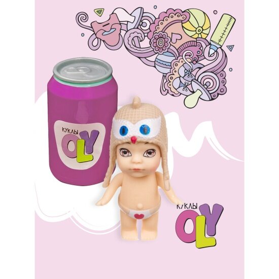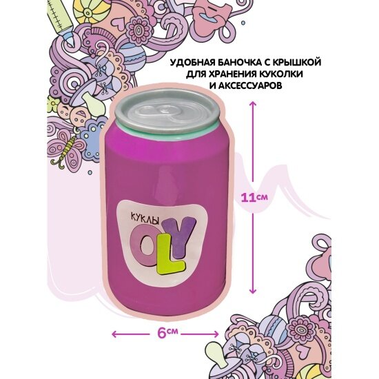 Куколка Bondibon Oly, в шапочке-ушанке, с аксессуарами, в банке (ВВ3831)
