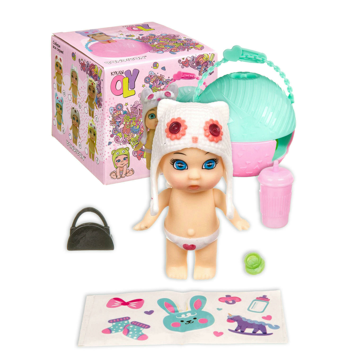 Куколка Bondibon Oly, в шапочке-ушанке, с аксессуарами, в шаре (ВВ3888)