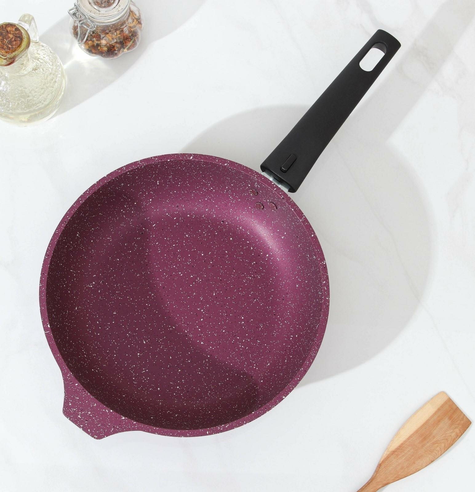 Сковорода Trendy style, d=22 см, съёмная ручка, антипригарное покрытие, цвет бордовый интересное: