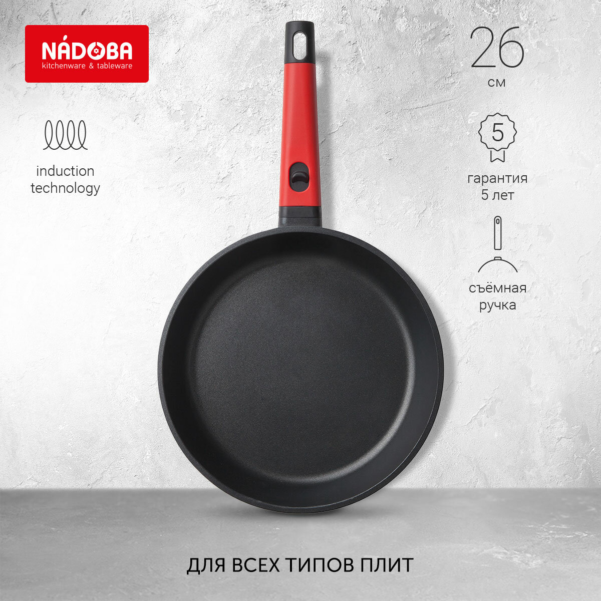 Сковорода NADOBA с антипригарным покрытием и съёмной ручкой, черная, 26 см (729217)
