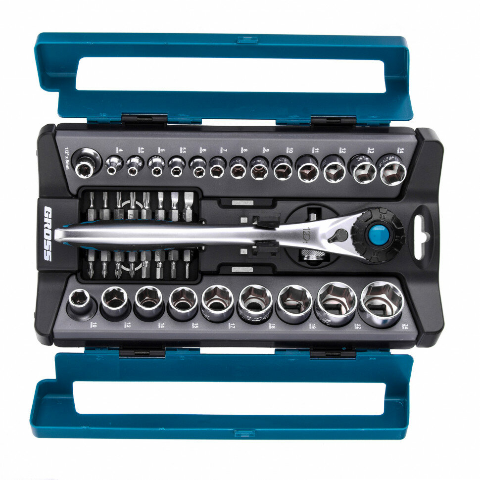 GROSS Набор торцевых головок, трещотка 120 зубьев, 41 предмет, 1/2", 1/4", CrV Gross, ( 14143 )