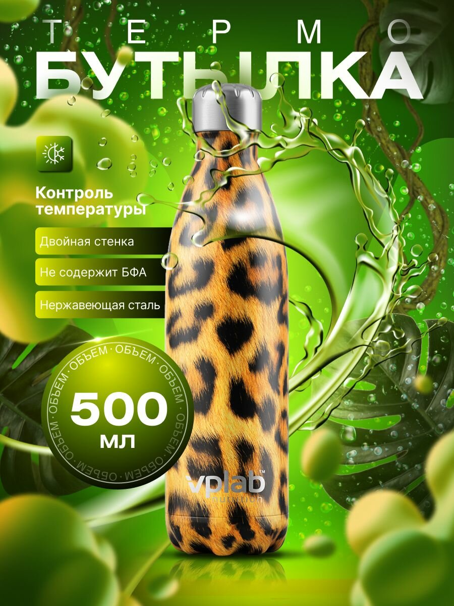 VPLab Nutrition Термобутылка, леопард, 500 мл.,VPLAB