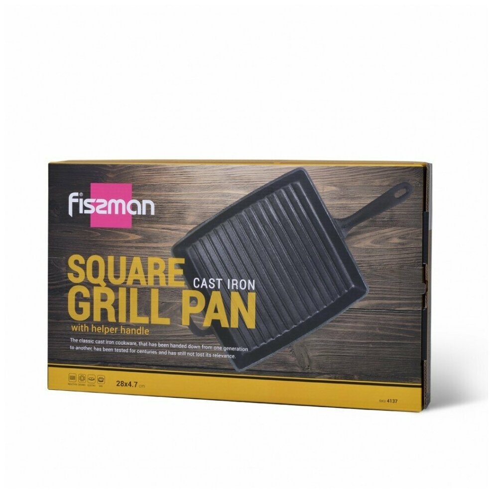Купить 4137 FISSMAN Сковорода-гриль 28х4,7см квадратная с вспомогательной ручкой (чугун) ; Индукция