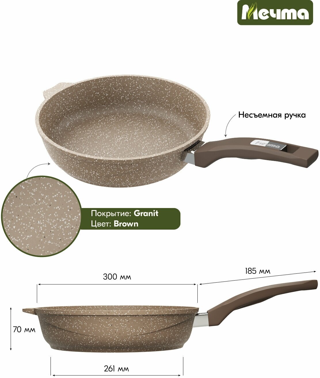 СохранитьСковорода Мечта Посуда мечта Гранит brown, несъемная ручка, 30 см интересное: