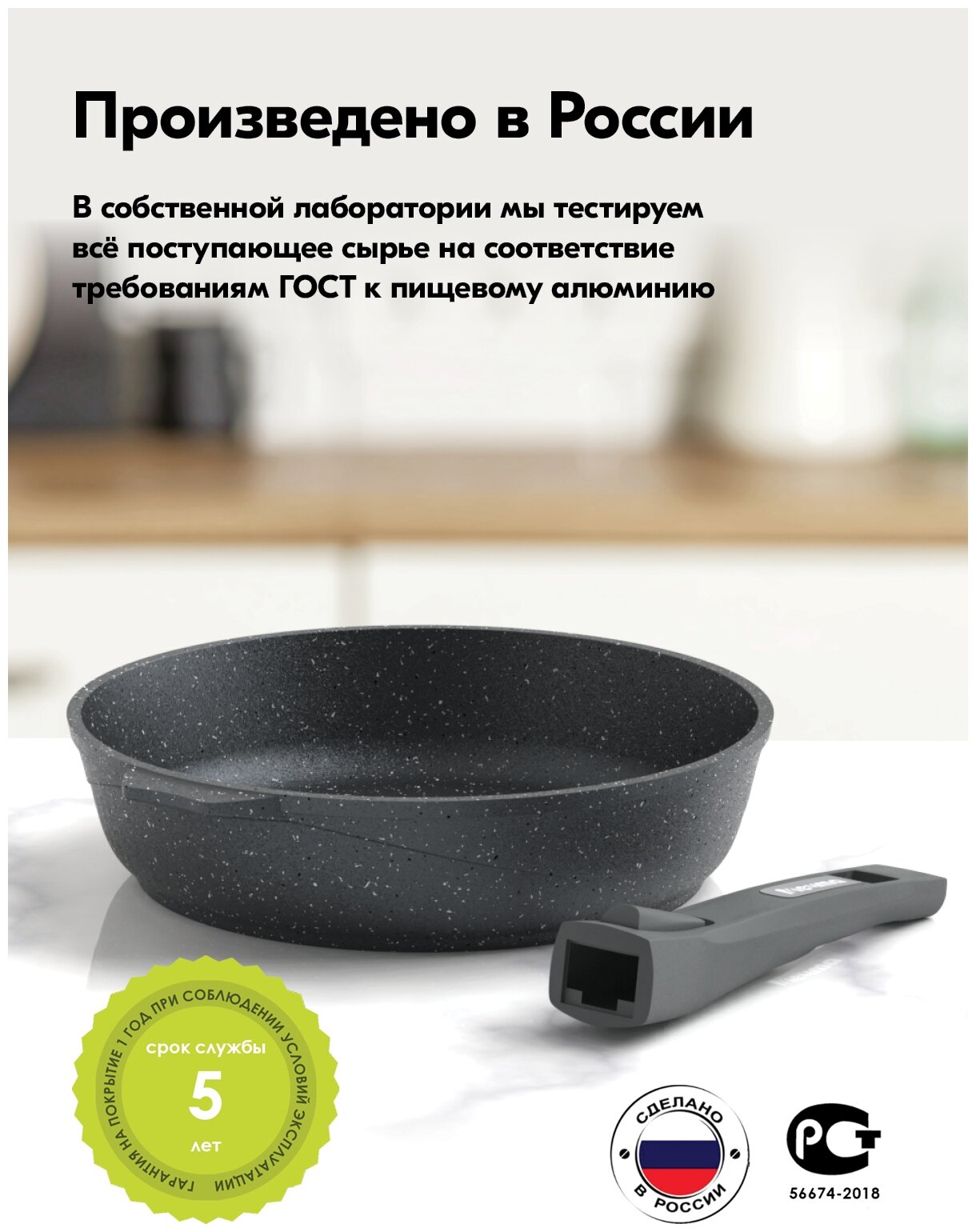 Сковорода "Мечта" 30см Гранит с антипригарным покрытием со съемной ручкой, можно мыть в посудомоечной машине