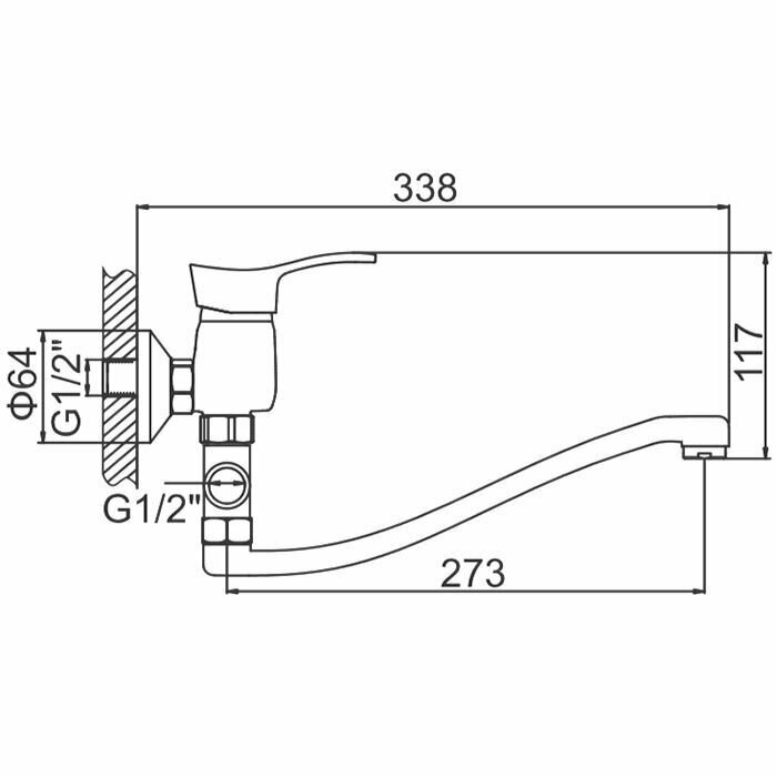 Смеситель для ванны, дл.излив 30см(S), карт.35мм Ledeme, 1/10; L2114-B
