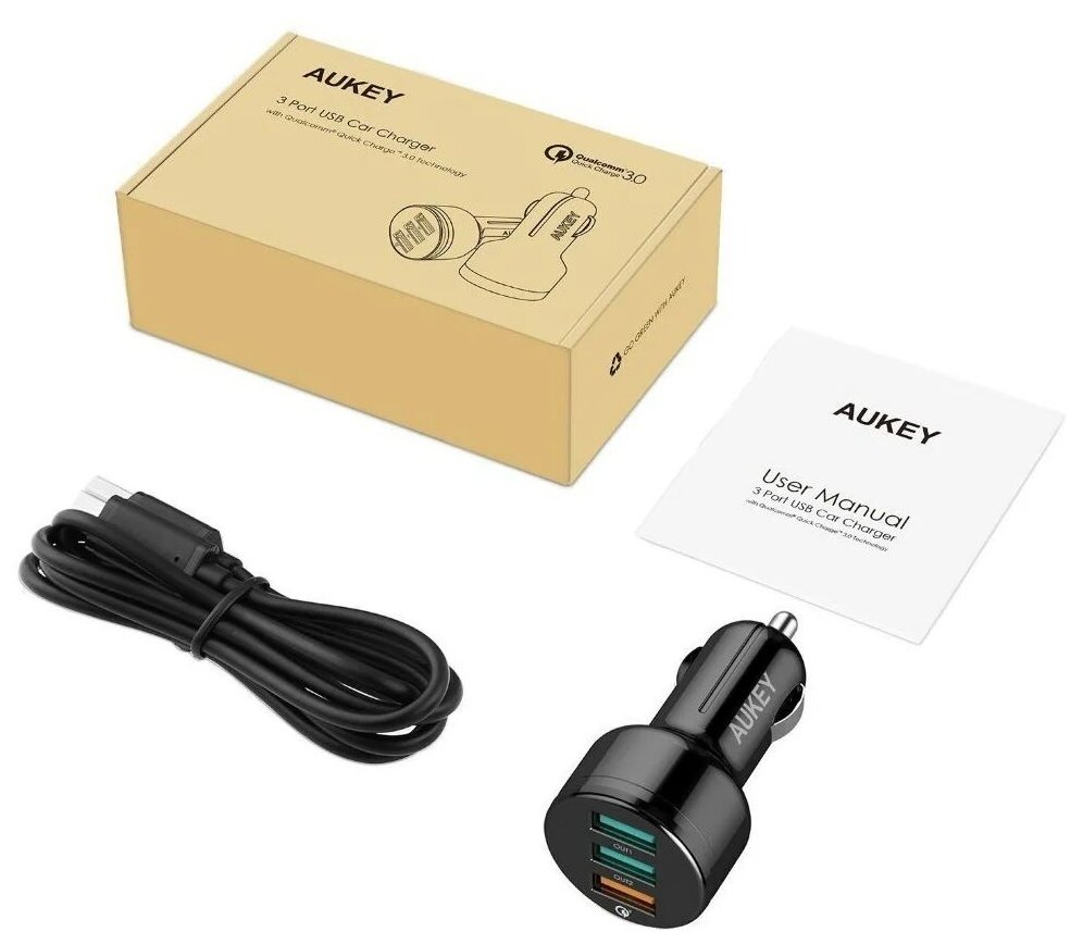 Автомобильная зарядка Aukey CC-T11, 3 USB, Quick Charge 3.0
