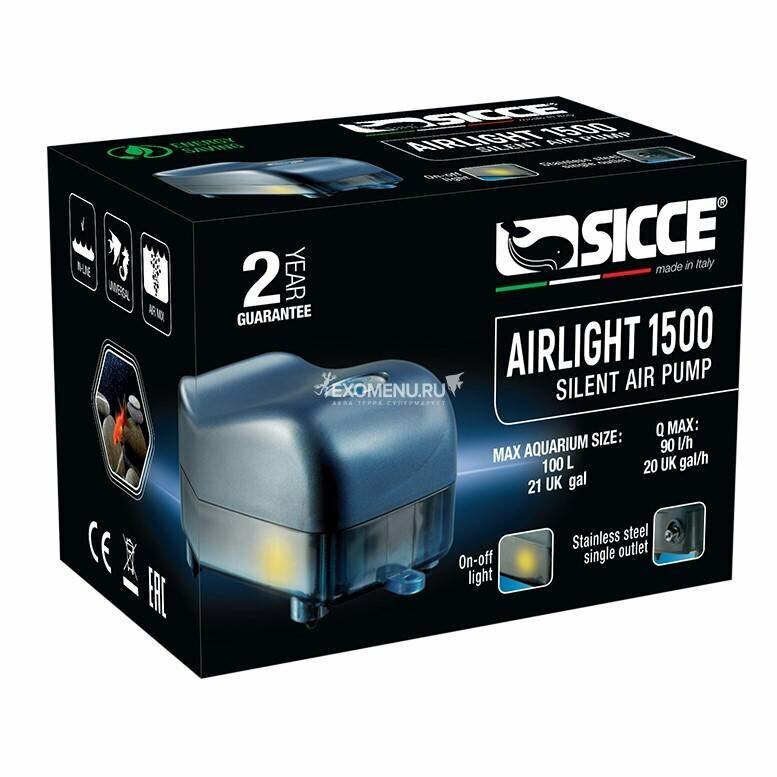 Компрессор Sicce AIRlight 1500, 90 л/ч, одноканальный 50х95х57 мм (91480) интересное: