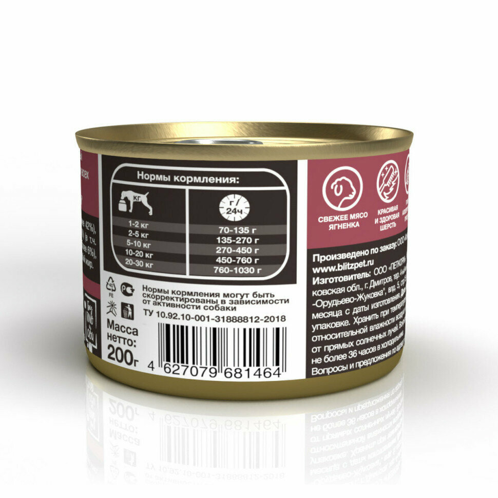 Blitz Adult Dog влажный корм для взрослых собак с ягненком и индейкой в консервах - 400 г, уп(24шт)