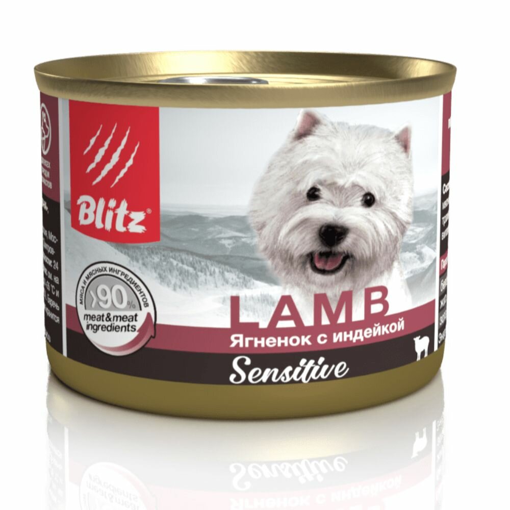 Консервы BLITZ Sensitive Dog для собак Ягнёнок с индейкой 200 г, (24 шт) Гипоаллергенный влажный корм