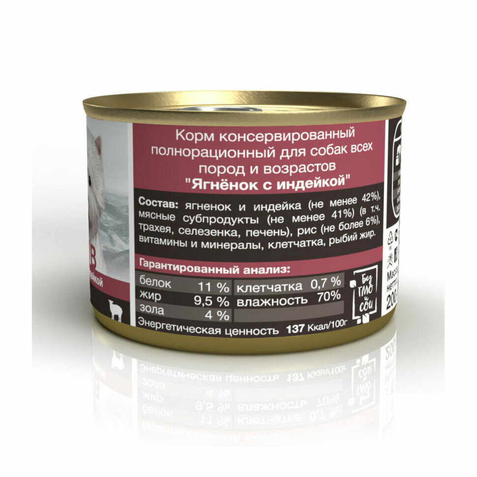 | Состав | ягнёнок, индейка, субпродукты индейки, рис не более 3%, рыбий жир, витамины и минералы |