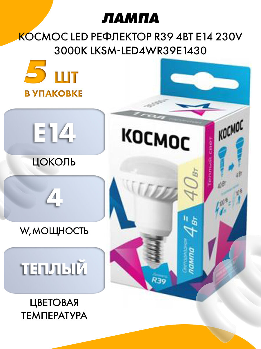 Купить Лампа светодиодная R39 4Вт 220В E14 3000К Космос Lksm_LED4wR39E1430 ( 1шт. )