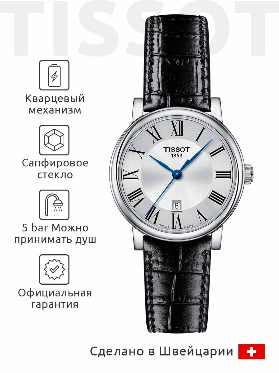 Швейцарские кварцевые часы Tissot Carson Premium Lady T122.210.16.033.00 на кожанном браслете, с водозащитой 5 бар и международной гарантией от производителя