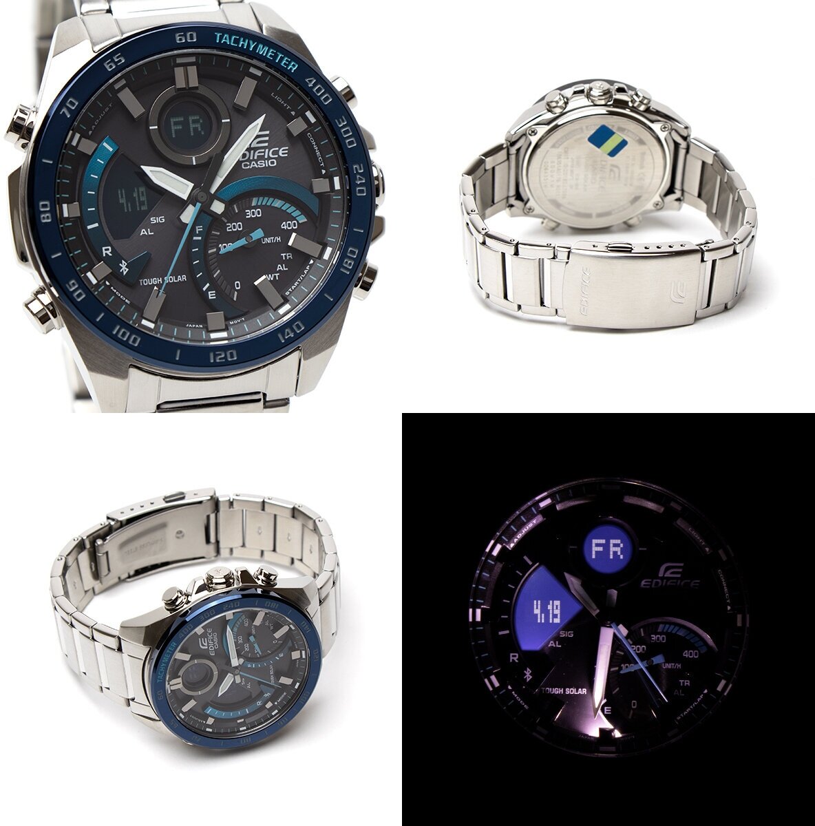 Японские кварцевые часы с солнечной подзарядкой Casio Edifice ECB-900DB-1B на стальном браслете, с водозащитой 10 бар и международной гарантией от производителя