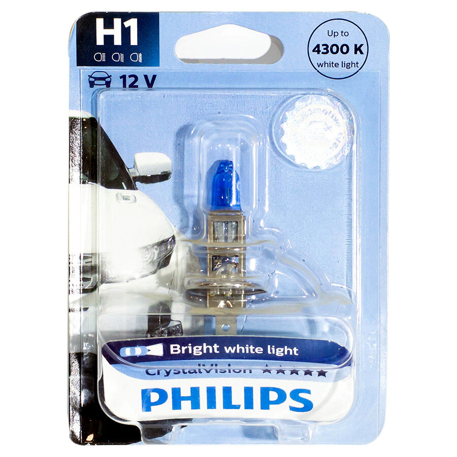 Лампа H1 12V (55W) Crystal Vision, 1Шт. Блистер [4300K] Philips арт. 12258CVB1