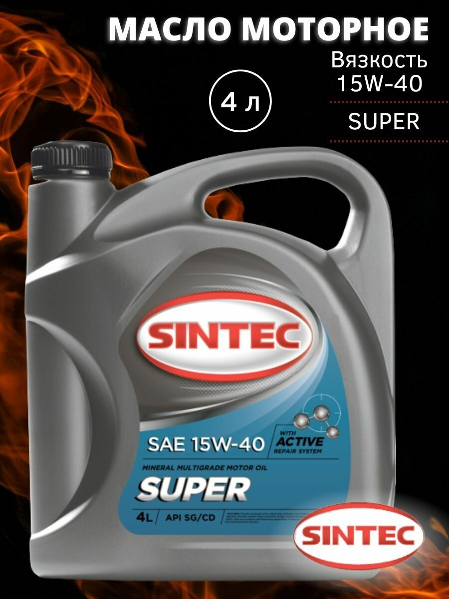 Минеральное моторное масло SINTEC Super 15W-40, 4 л, 4 л