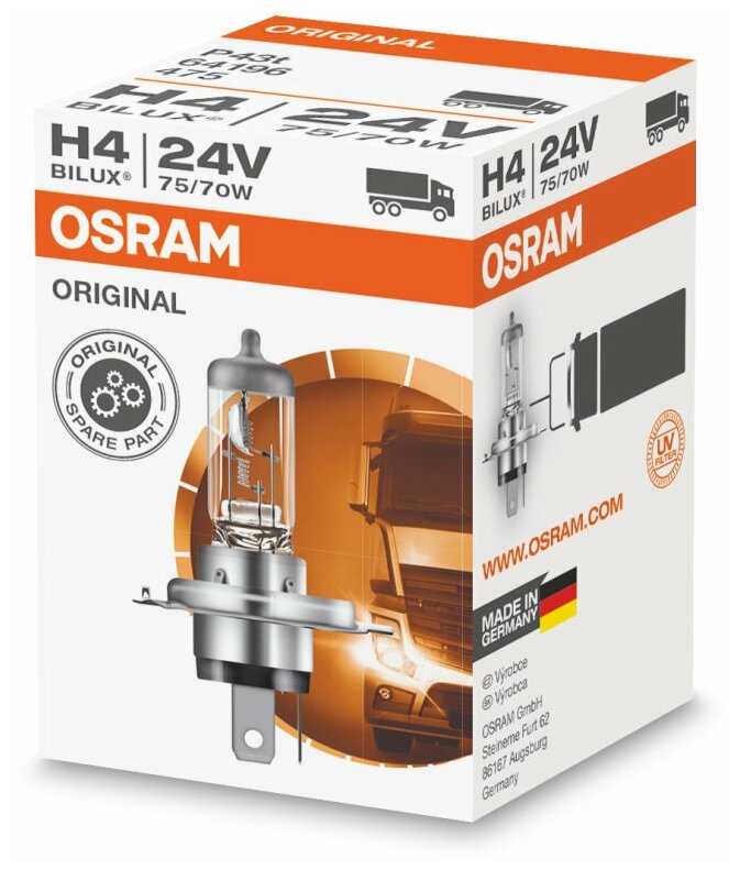 Osram / 64196 / Лампа H4 24V 75/70W P43t ORIGINAL LINE качество оригинальной з/ч (ОЕМ) 1 шт. HCV