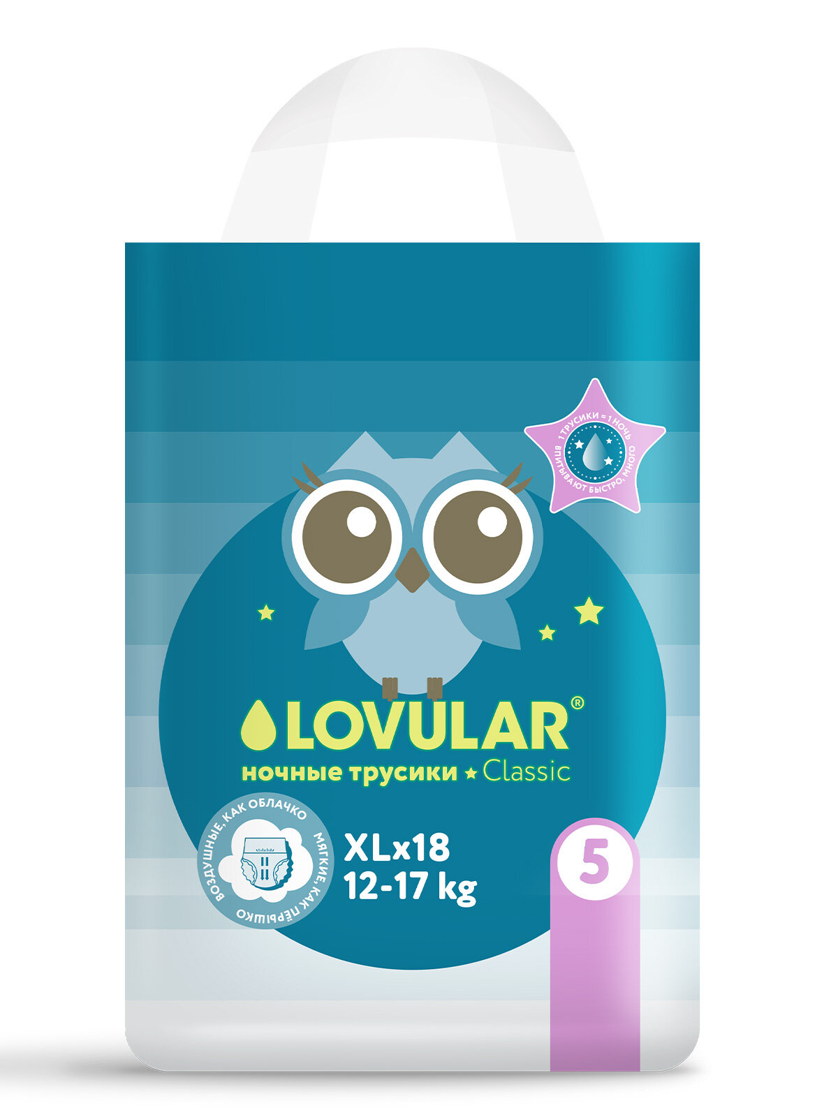 Трусики - подгузники Classic ночные LOVULAR XL, 12-17 кг. 18 шт/уп интересное: